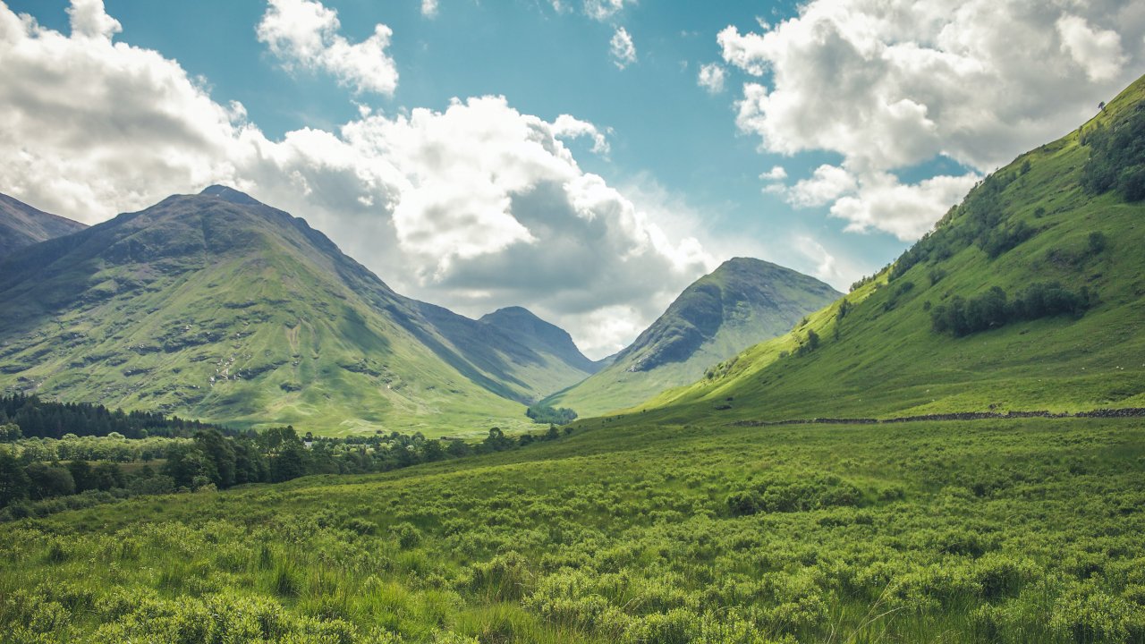 Обои: долина, холмы, Шотландия - 1280x720