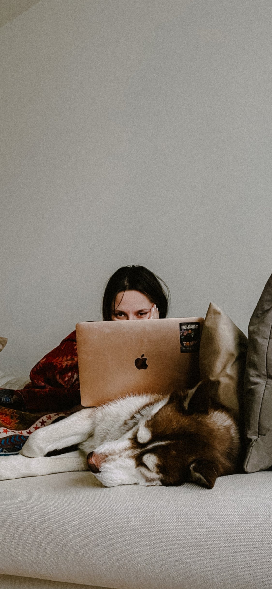 Обои: девушка, собака, на диване - 1125x2436