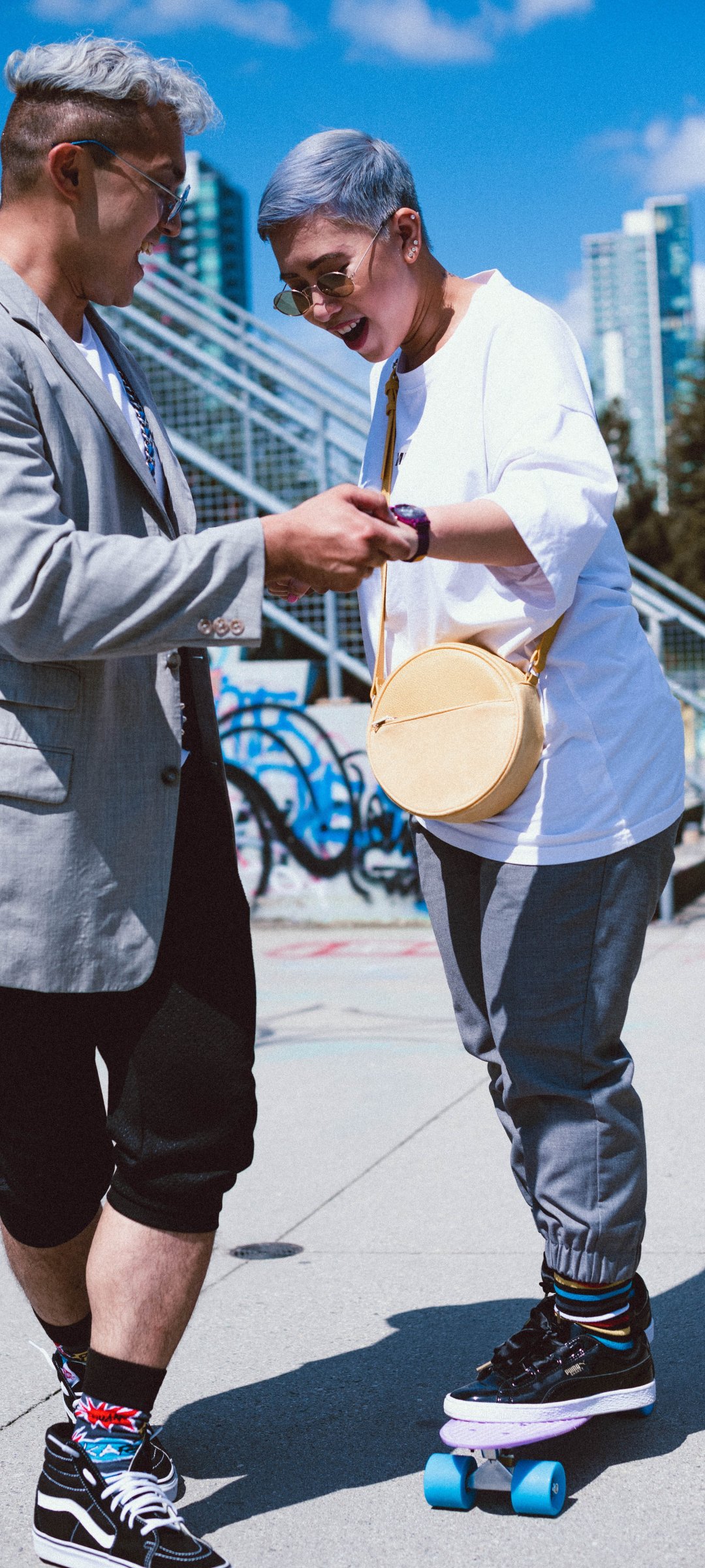 Обои: парень с девушкой, скейтборд - 1080x2400