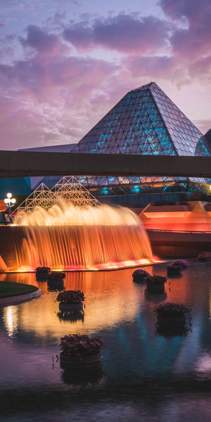 Обои: Epcot, фонтан, вечер - 720x1440