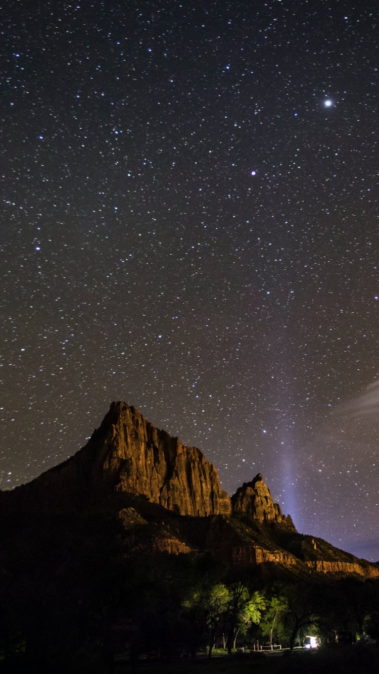 Обои: ночное небо, горы - 750x1334