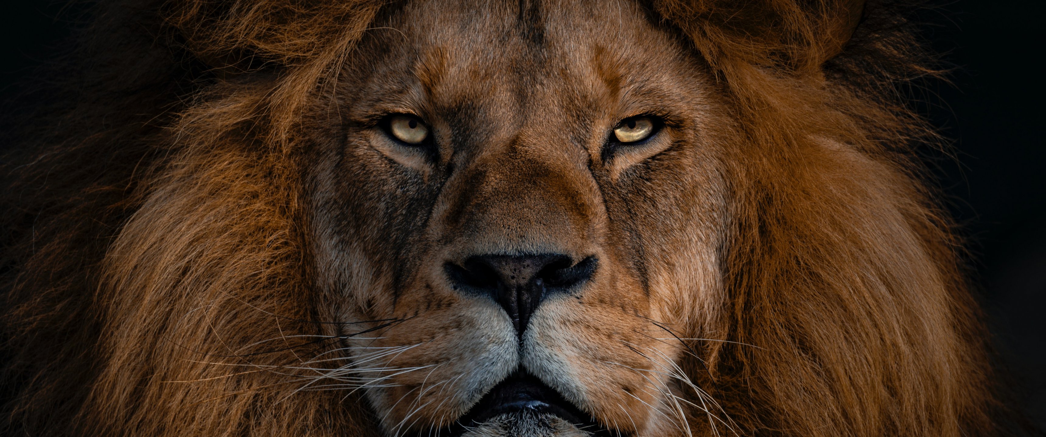 Обои: лев, грива, морда - 3440x1440