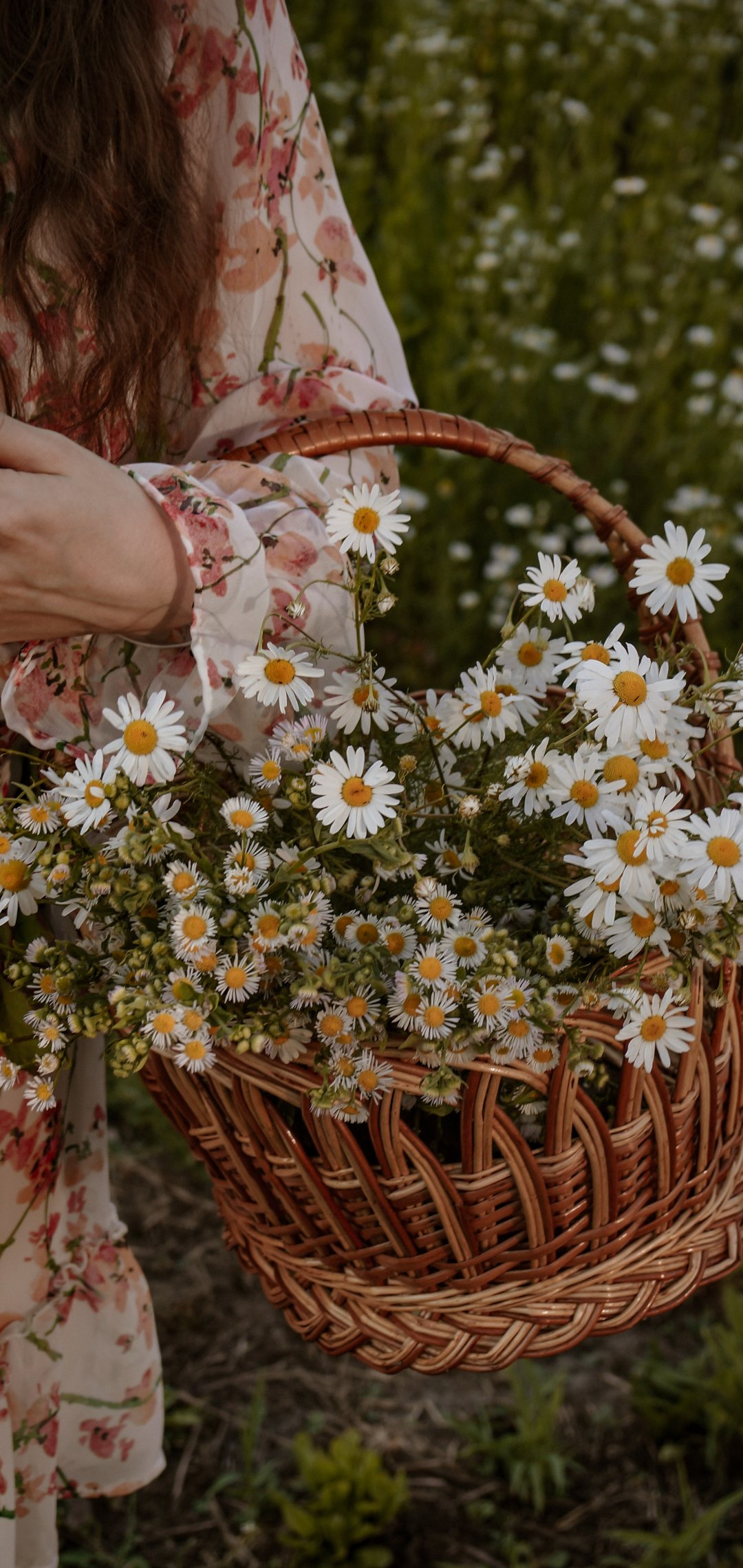 Обои: корзина с ромашками - 1080x2280