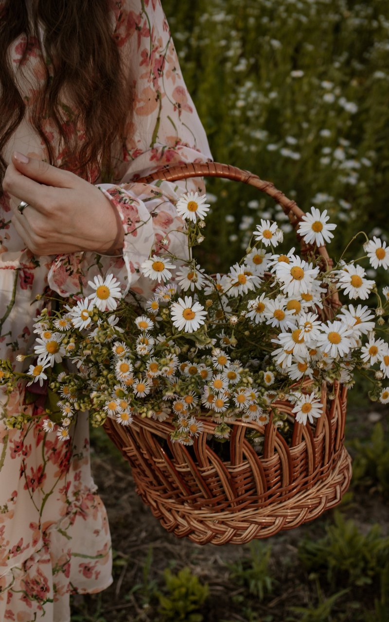 Обои: корзина с ромашками - 800x1280