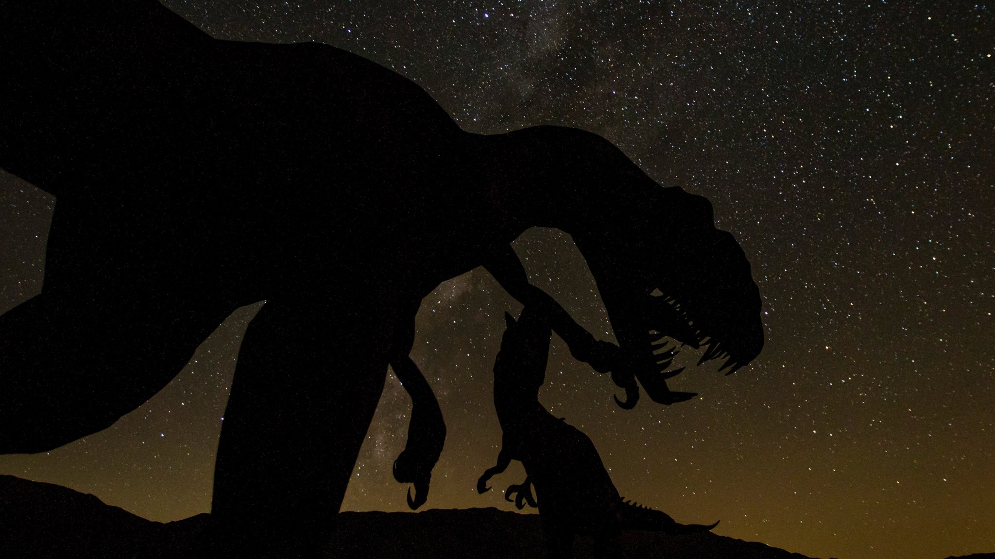 Обои: динозавр, звездное небо - 2048x1152