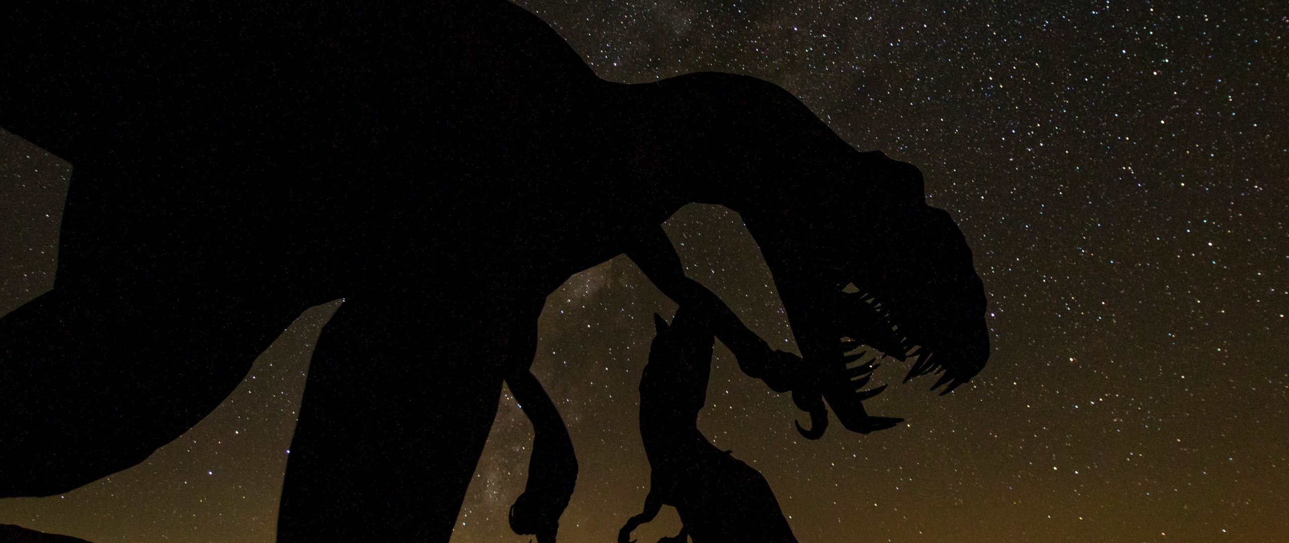 Обои: динозавр, звездное небо - 2560x1080