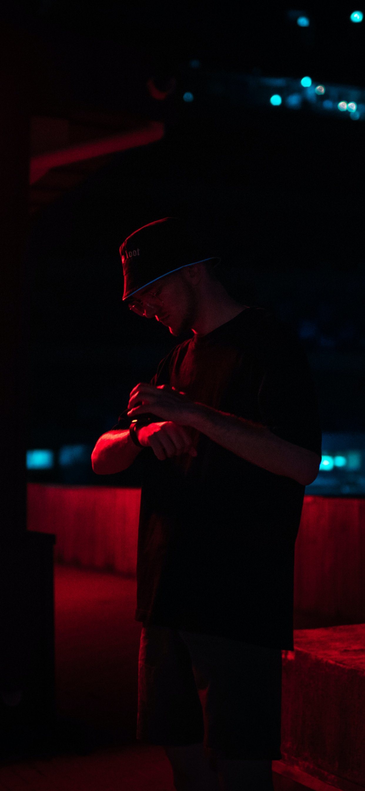 Обои: парень, ночная улица - 1242x2688