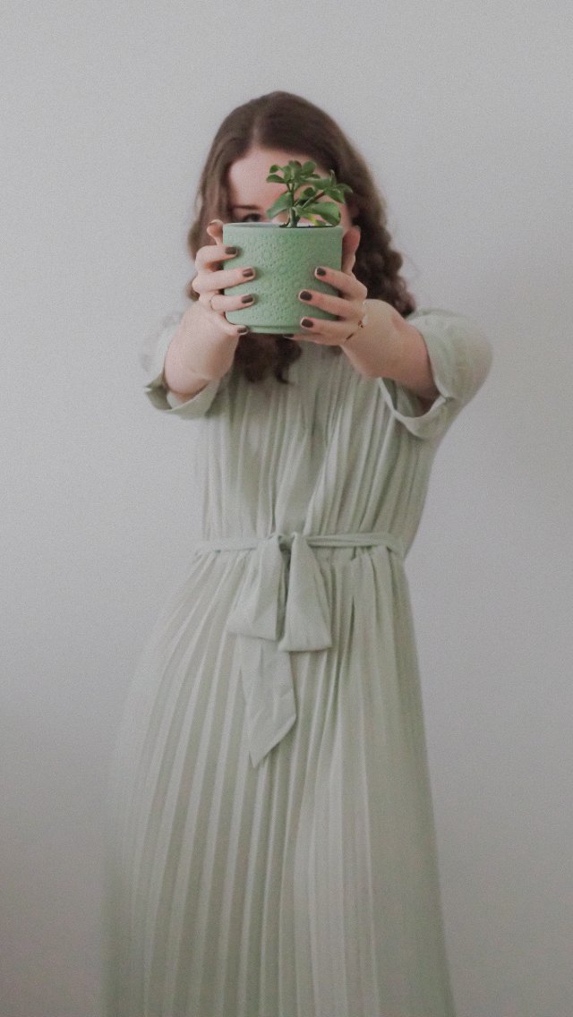 Обои: девушка, домашний цветок - 640x1136