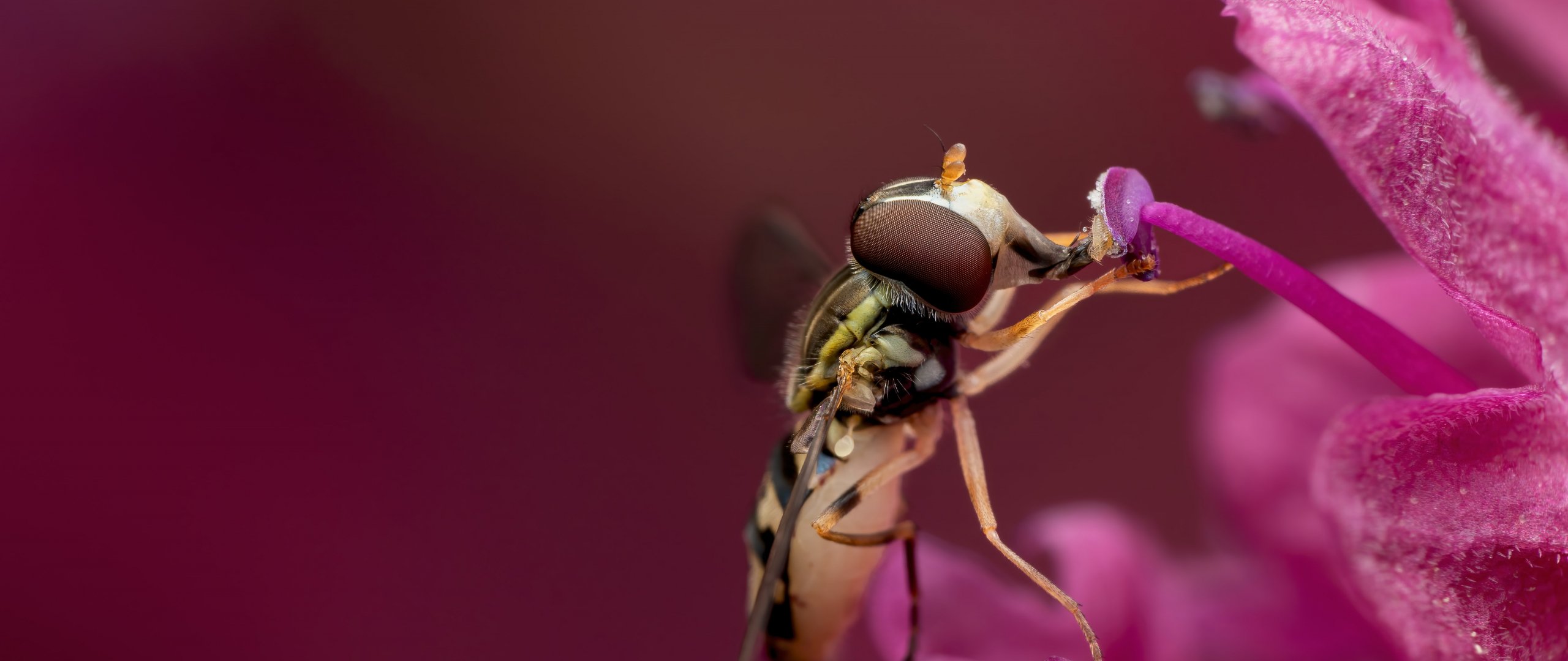 Обои: пчела у цветка - 2560x1080