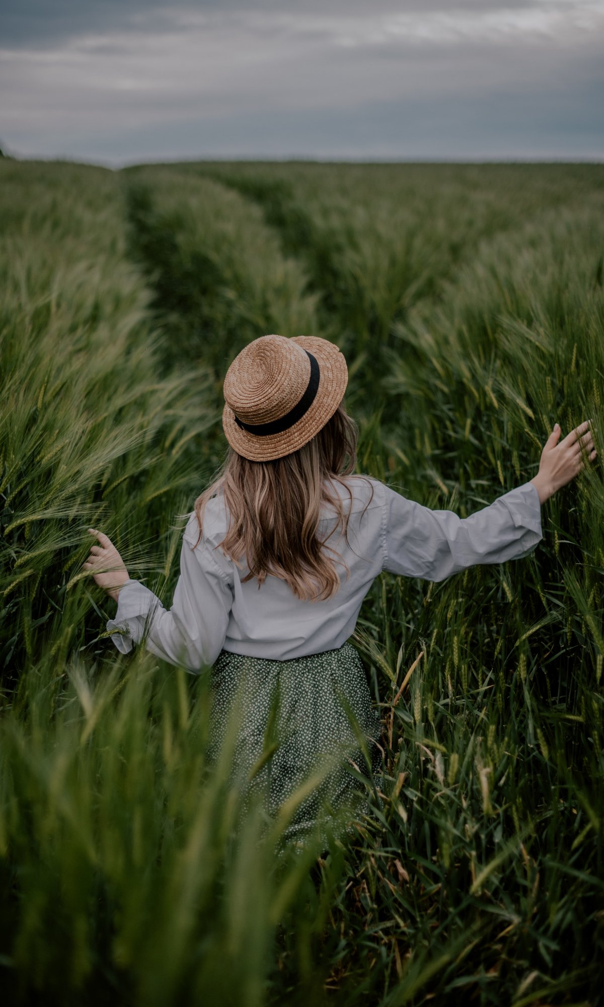 Обои: поле, девушка в шляпе - 1200x2000