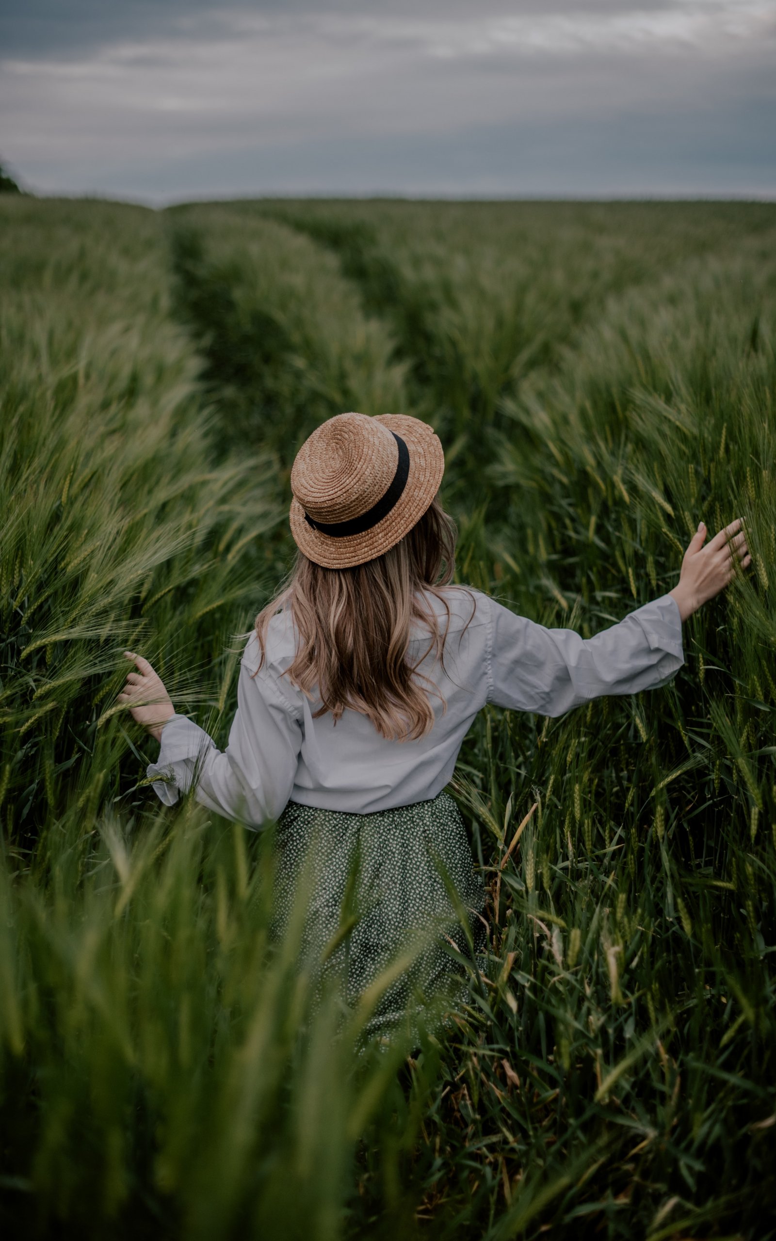 Обои: поле, девушка в шляпе - 1600x2560