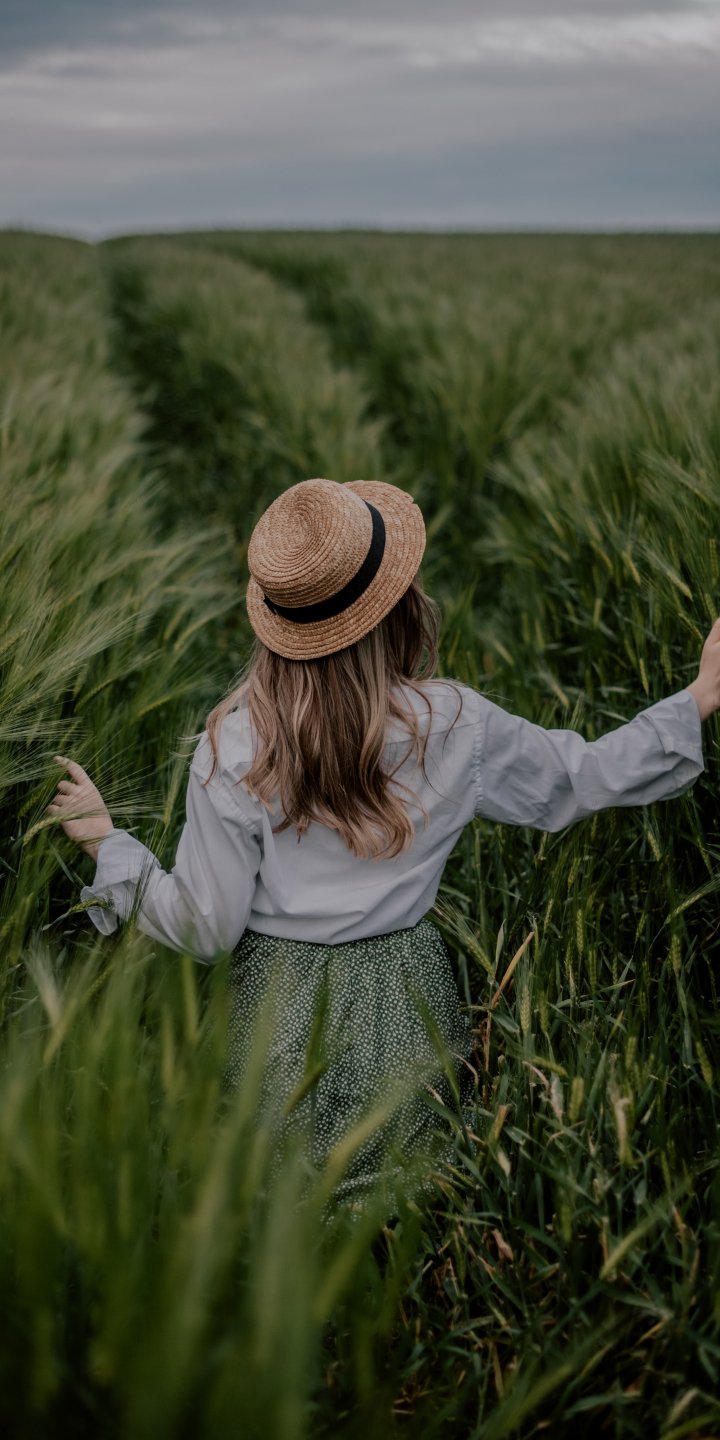 Обои: поле, девушка в шляпе - 720x1440
