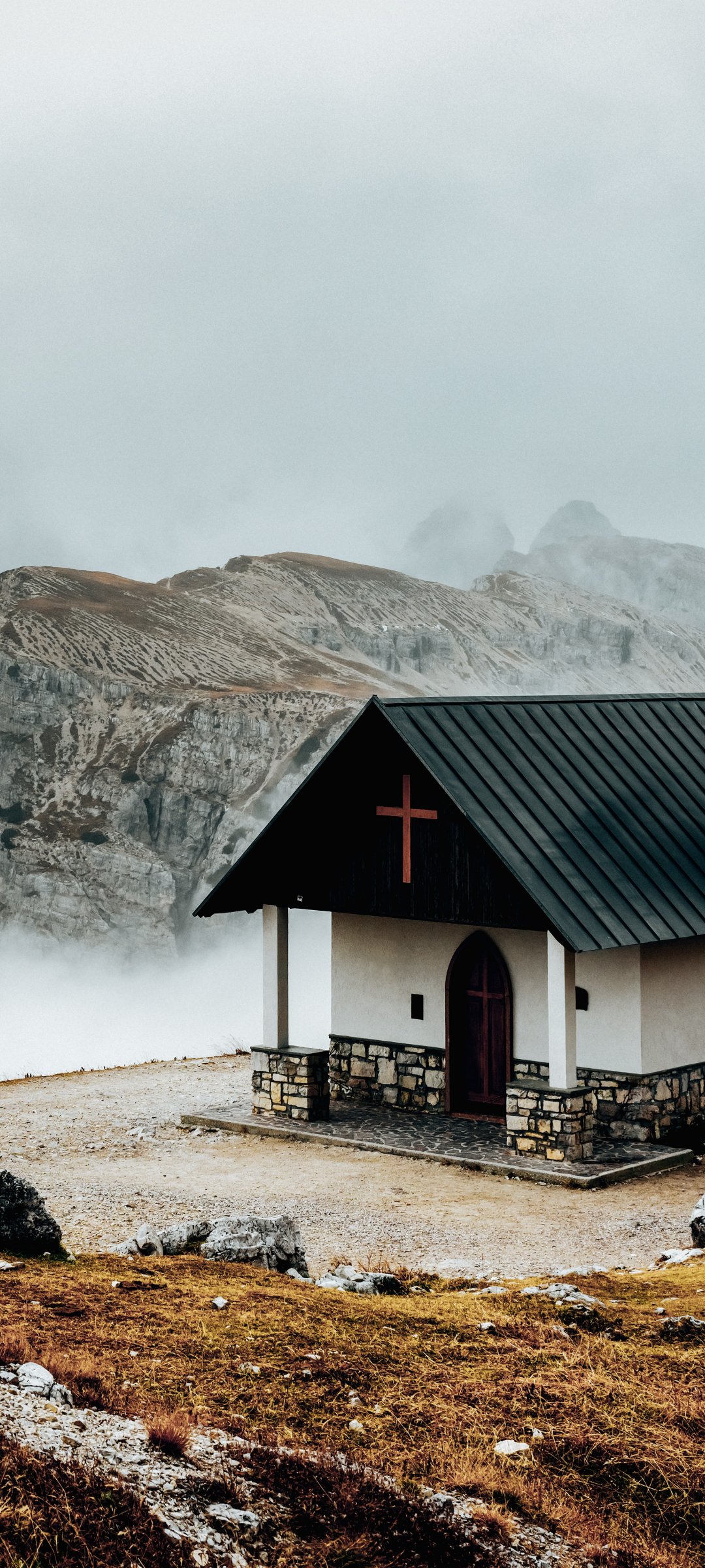 Обои: церковь, в горах - 1080x2400