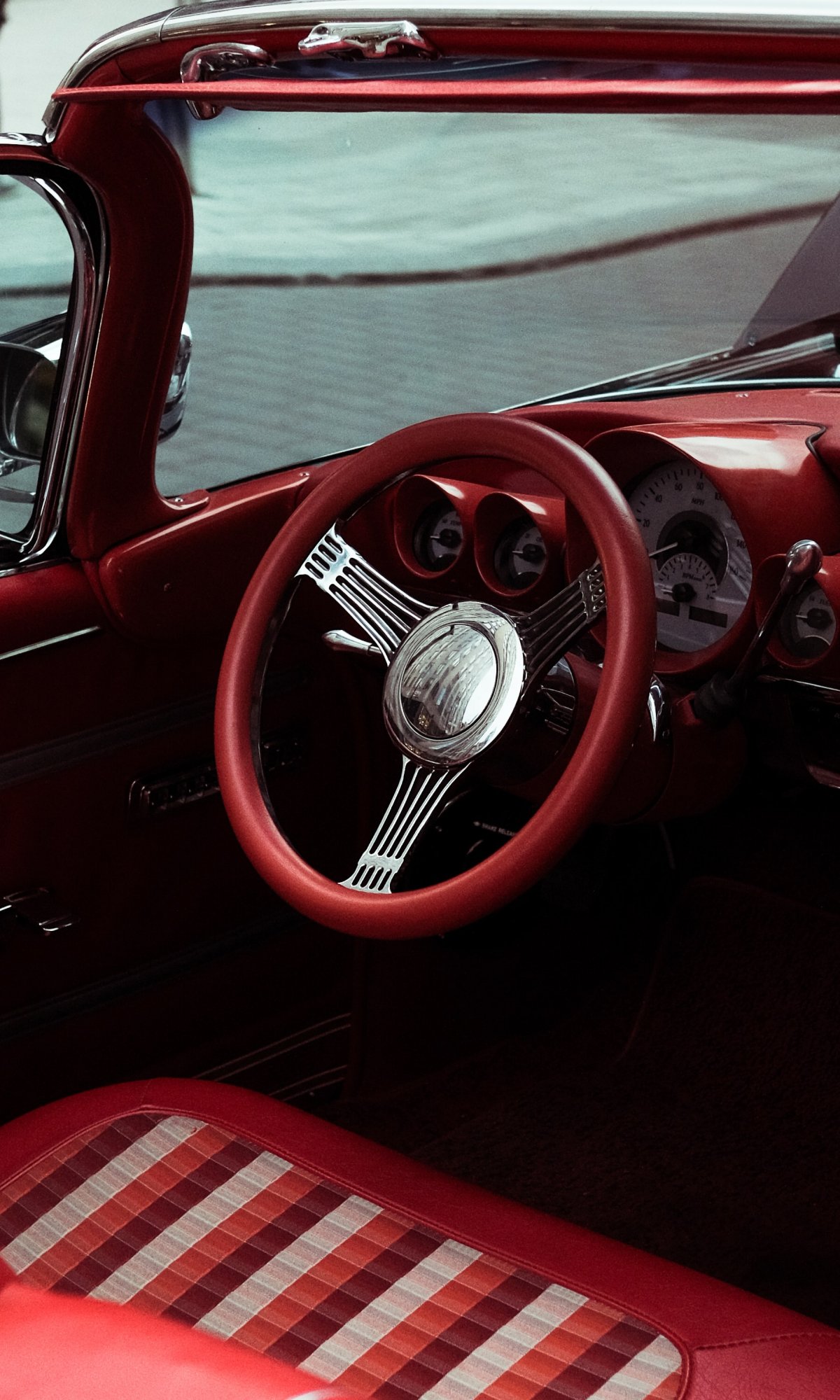 Обои: красная ретро машина - 1200x2000