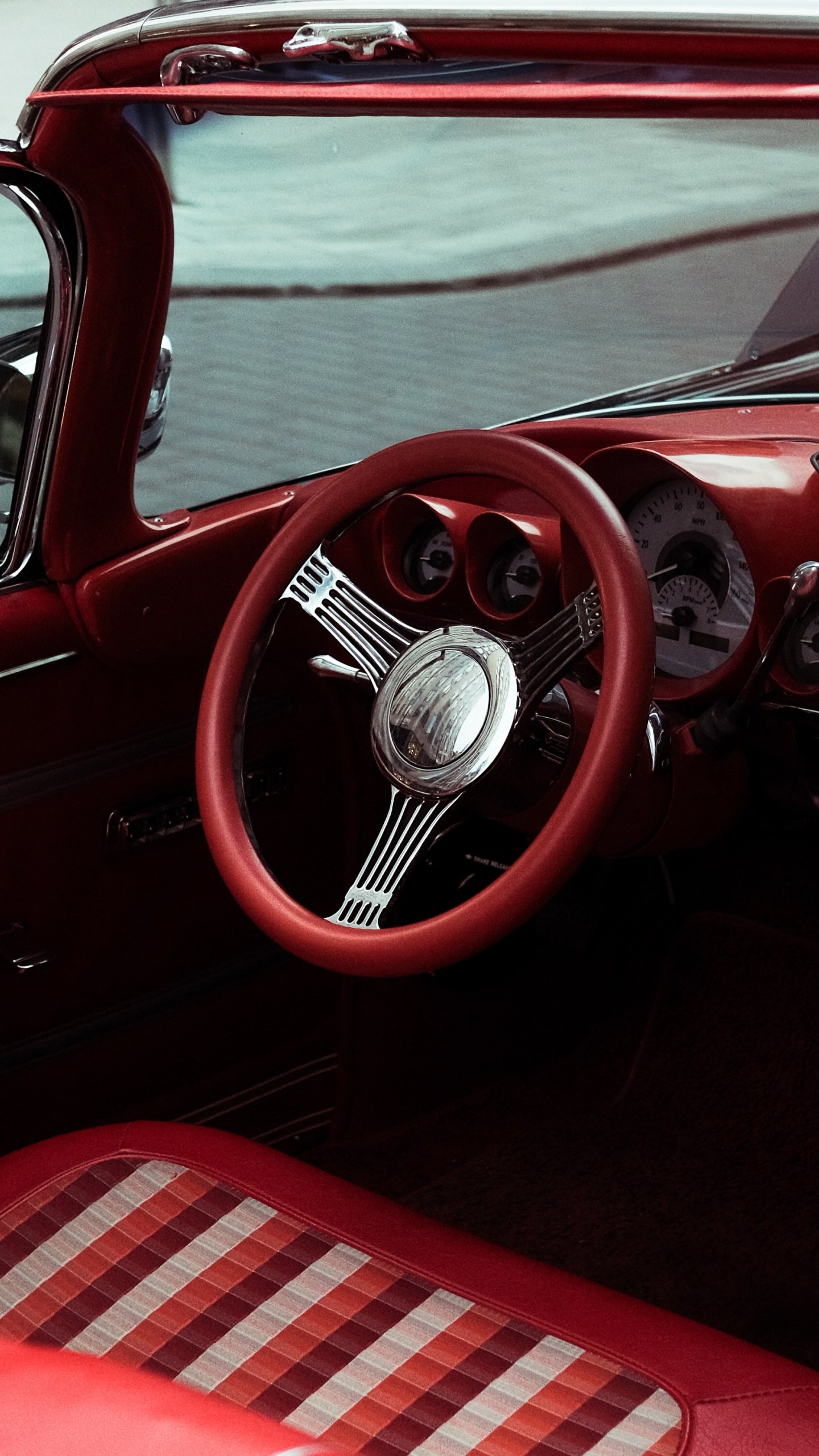 Обои: красная ретро машина - 1440x2560