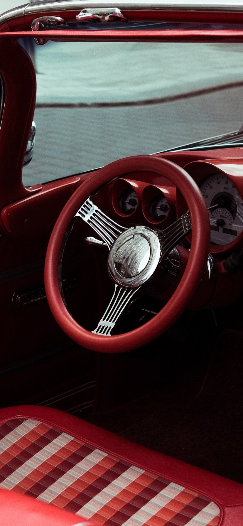 Обои: красная ретро машина - 828x1792