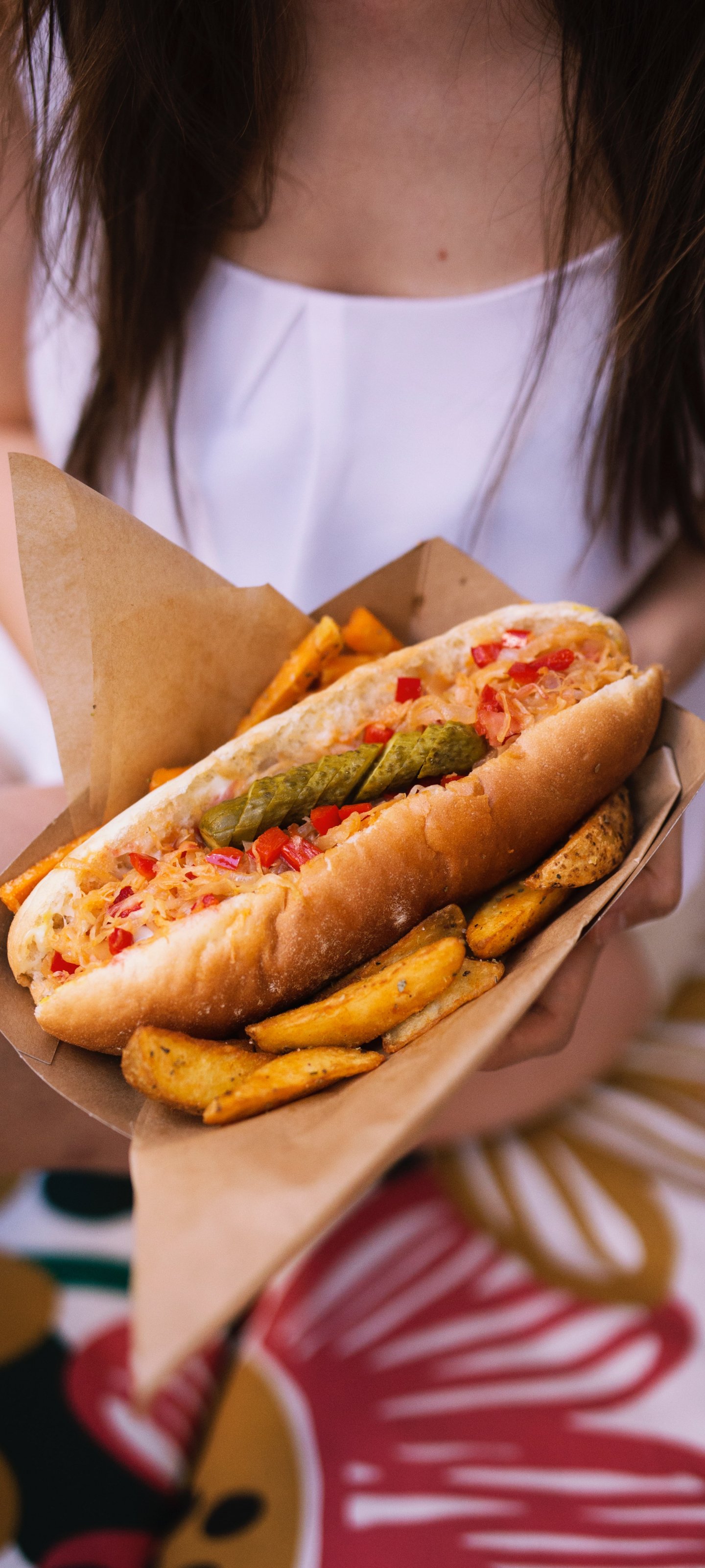 Обои: девушка с едой - 1440x3200