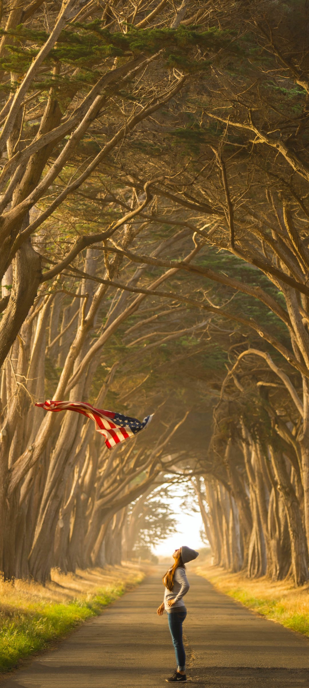 Обои: воздушный змей, аллея - 1080x2400