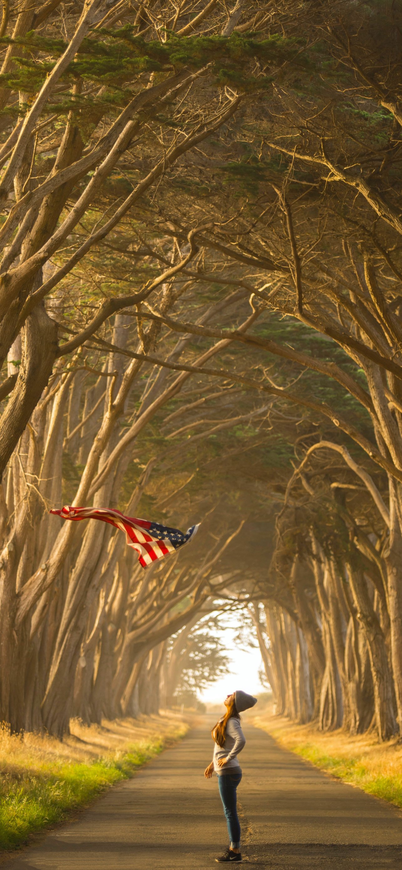 Обои: воздушный змей, аллея - 1284x2778