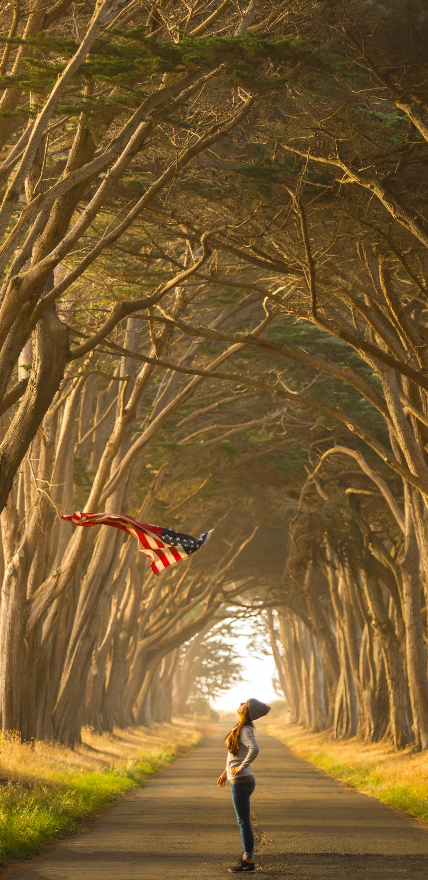 Обои: воздушный змей, аллея - 1440x2960