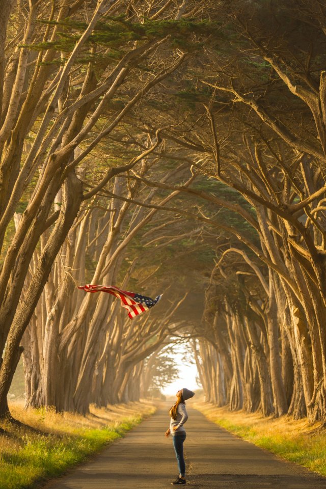 Обои: воздушный змей, аллея - 640x960