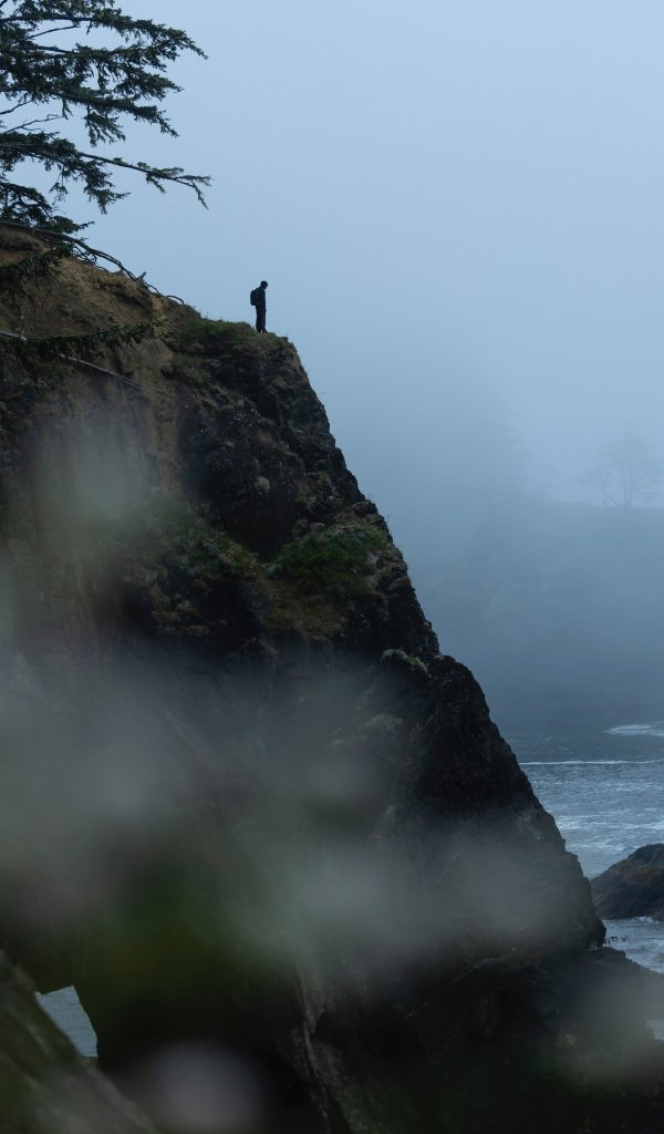 Обои: человек на скале - 600x1024