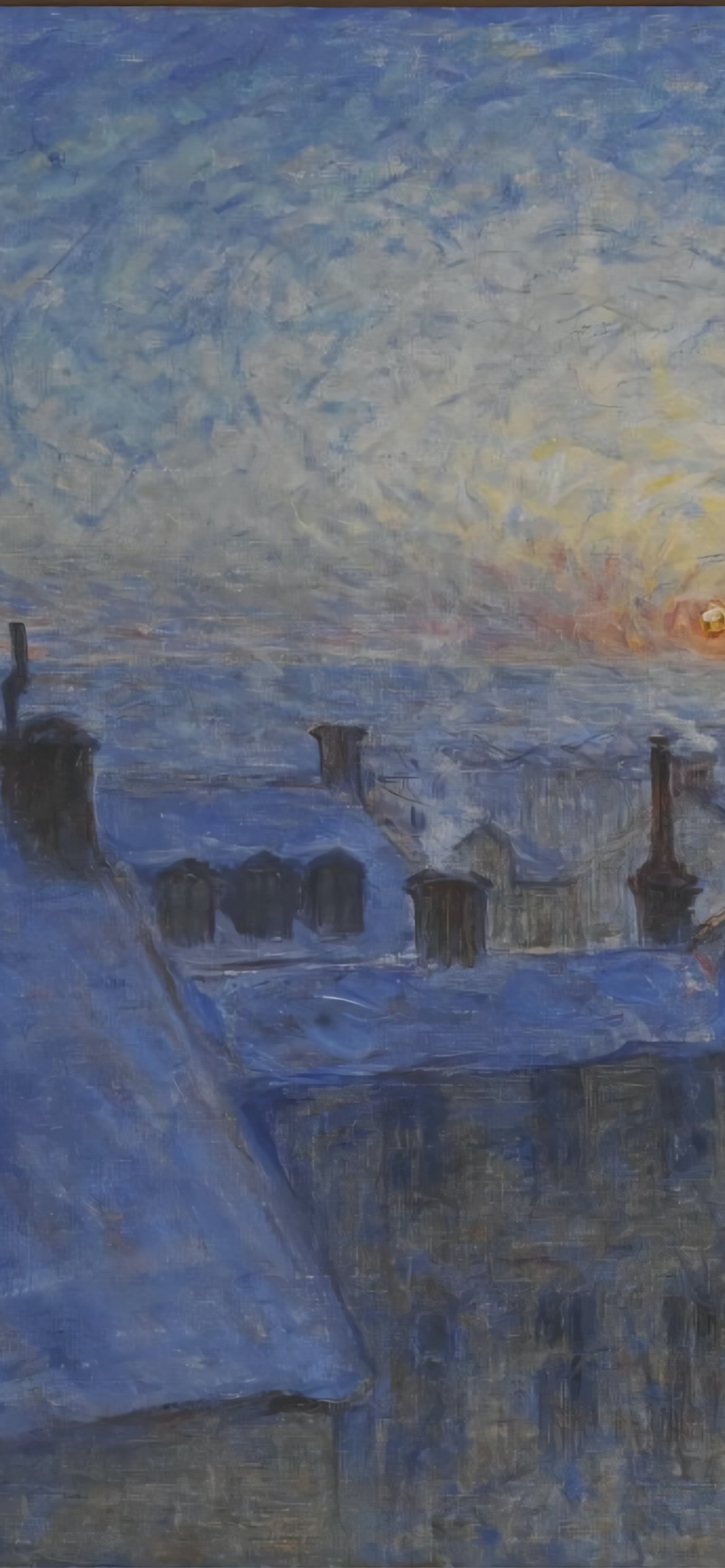 Обои: картина, восход солнца над крышами - 1170x2532