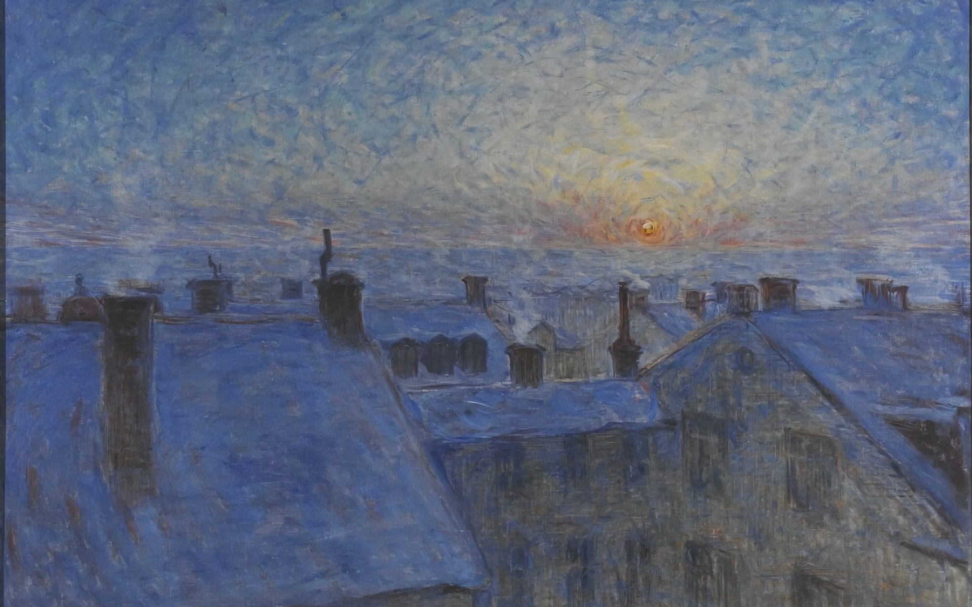 Обои: картина, восход солнца над крышами - 1920x1200