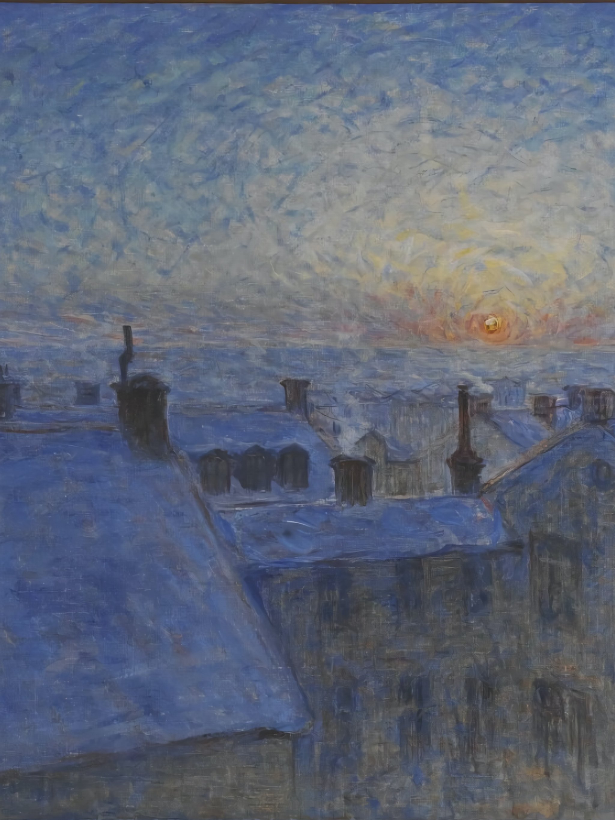 Обои: картина, восход солнца над крышами - 2048x2732