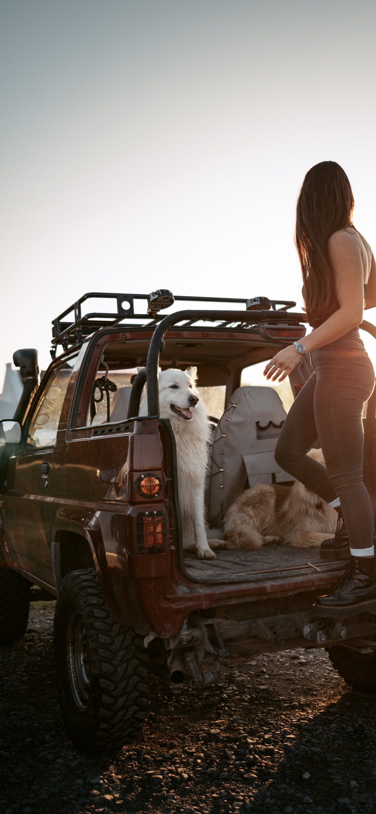 Обои: машина с собаками, девушка - 1242x2688