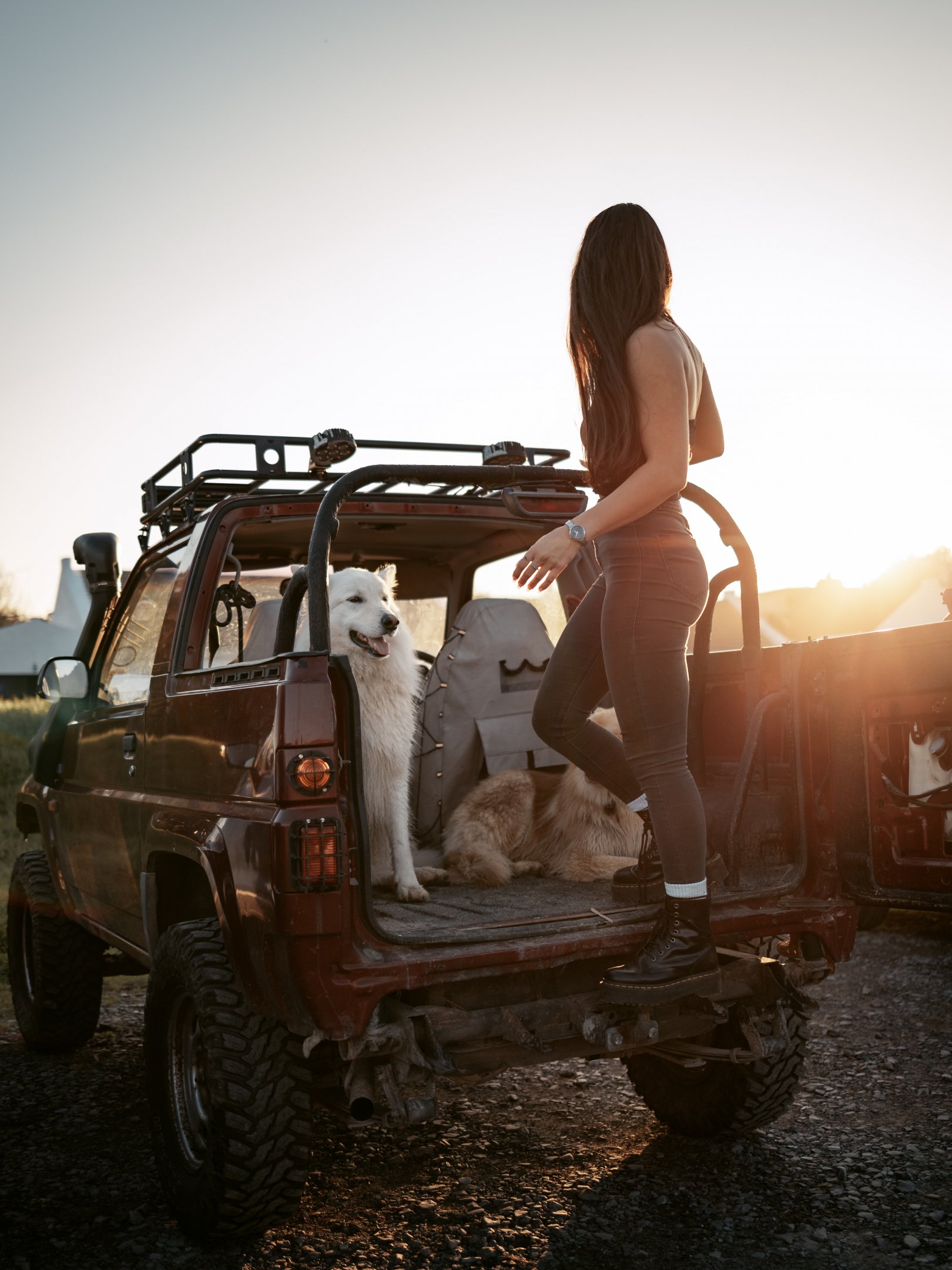 Обои: машина с собаками, девушка - 1620x2160
