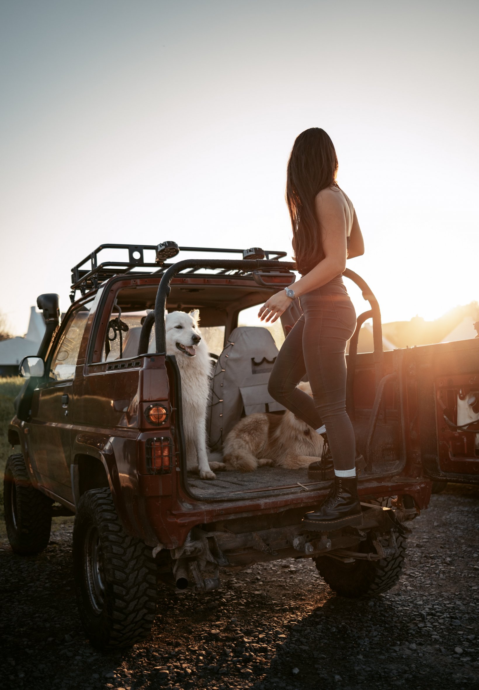 Обои: машина с собаками, девушка - 1640x2360