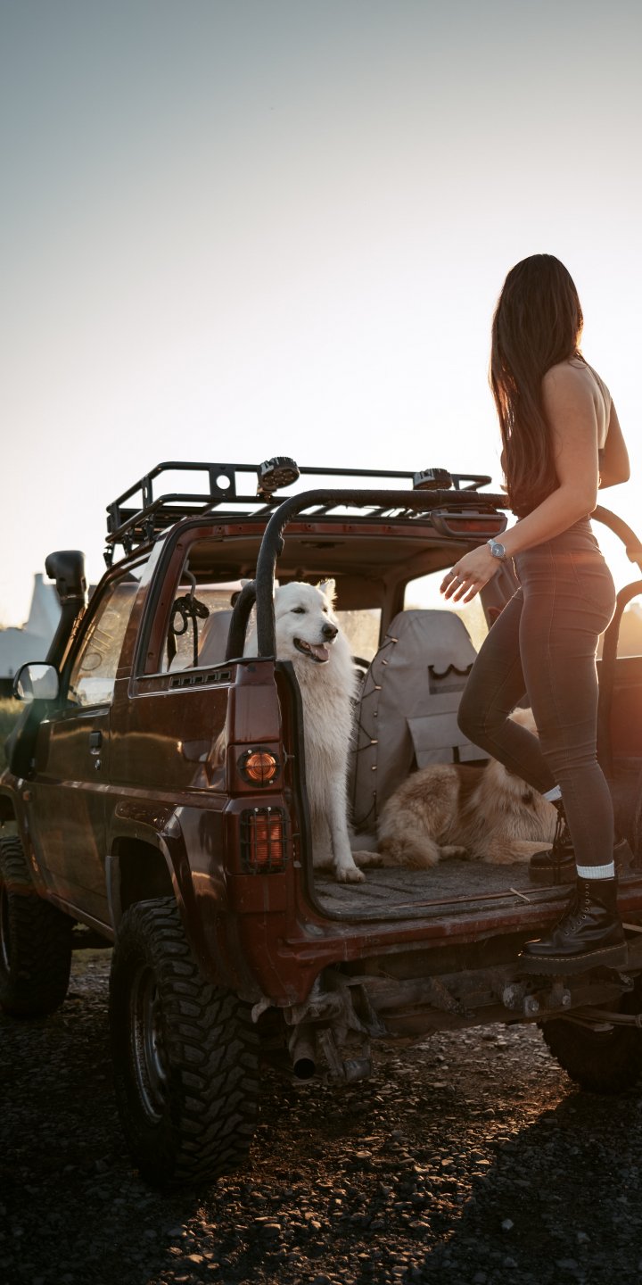 Обои: машина с собаками, девушка - 720x1440