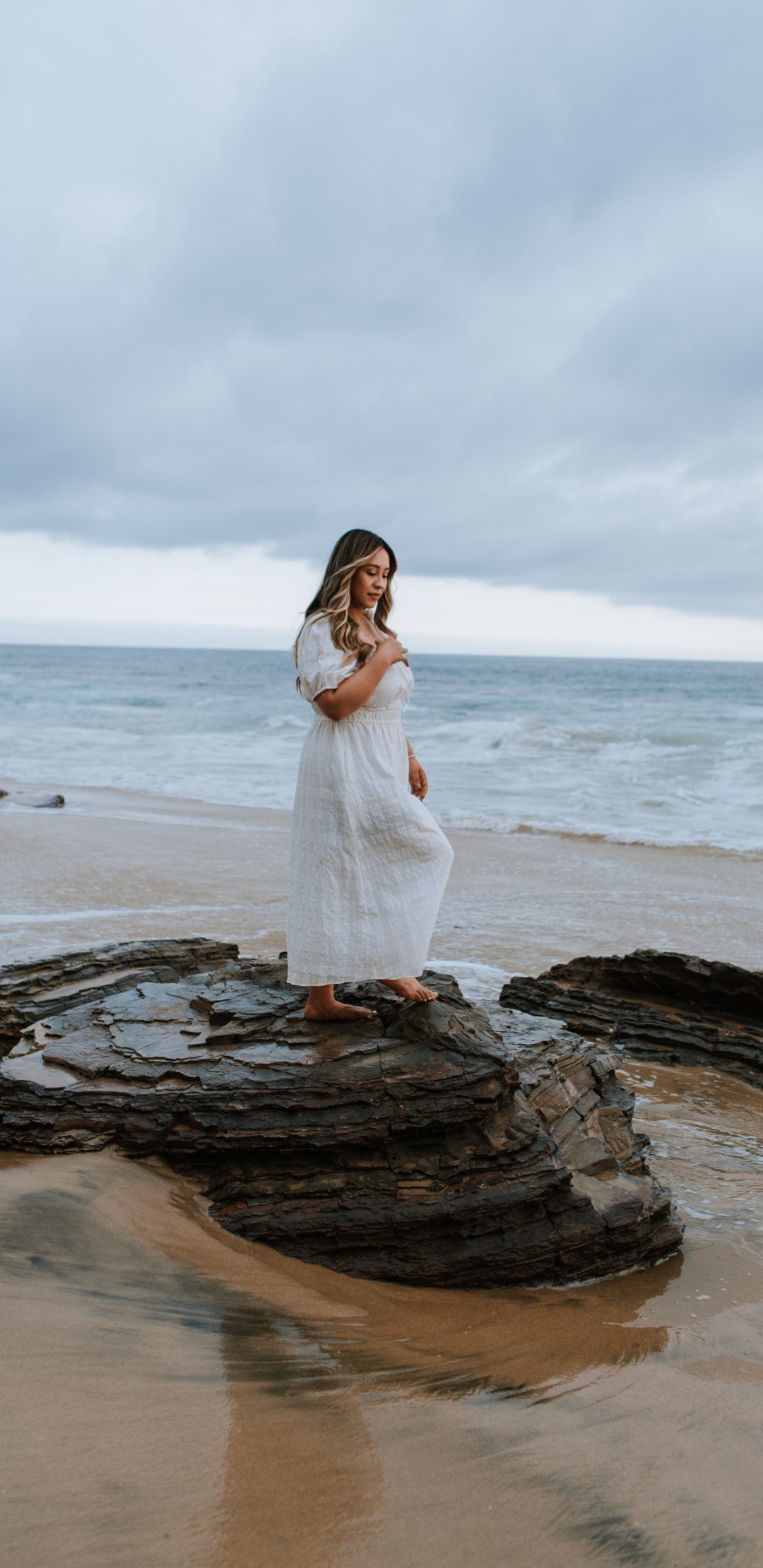 Обои: девушка на берегу моря - 1080x2220