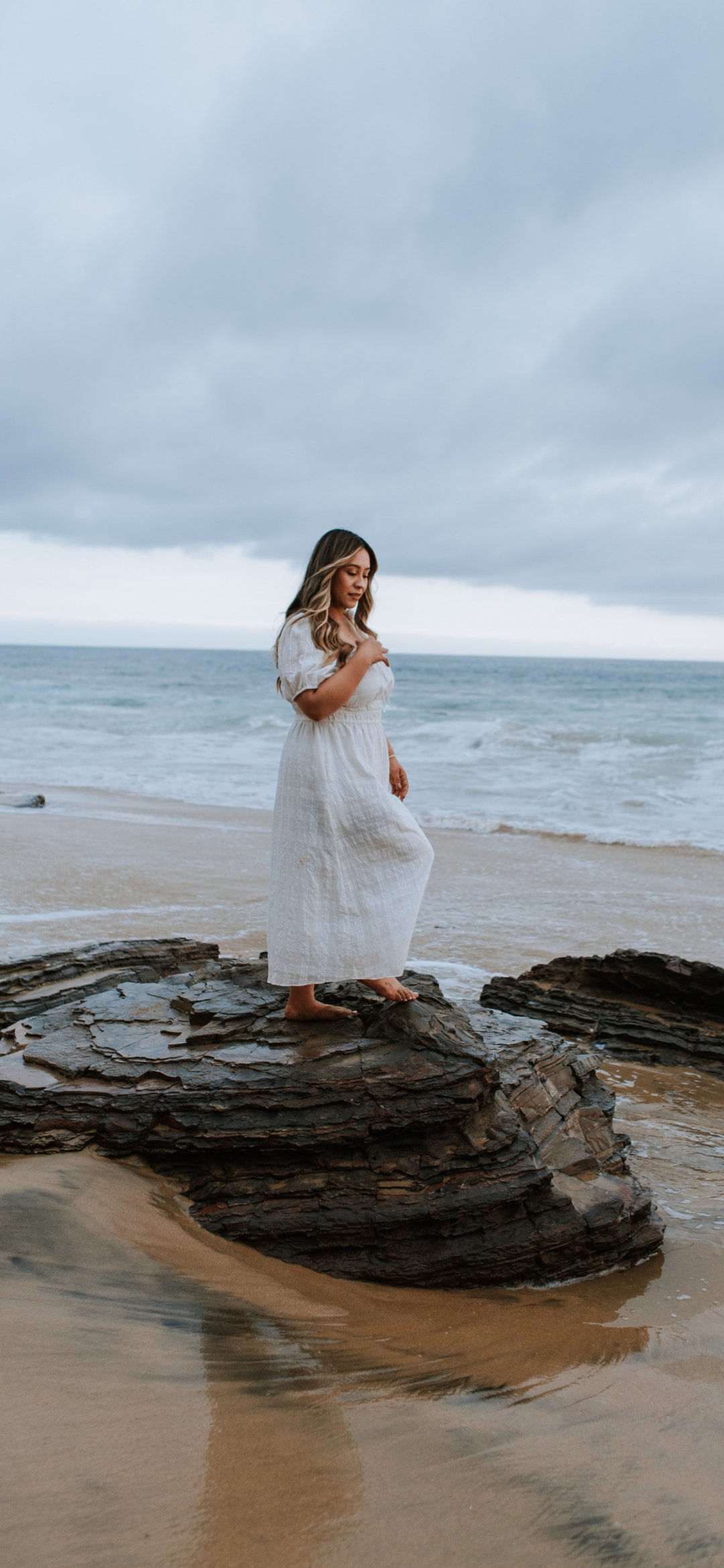 Обои: девушка на берегу моря - 1080x2340