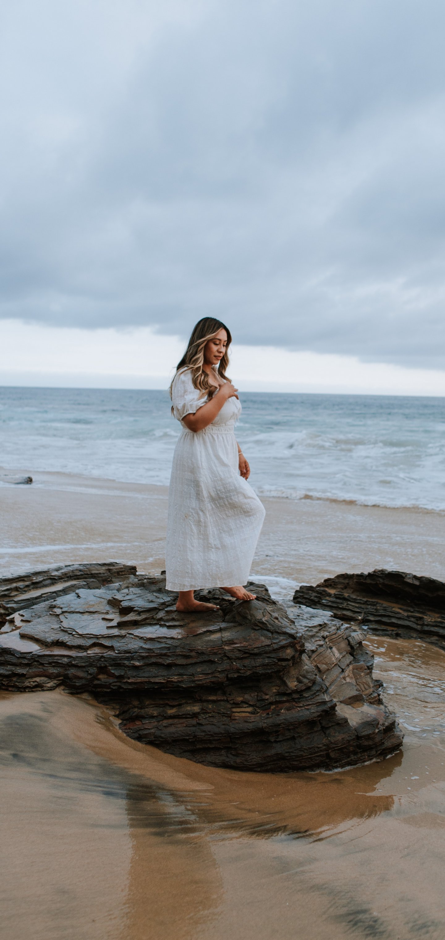 Обои: девушка на берегу моря - 1440x3040