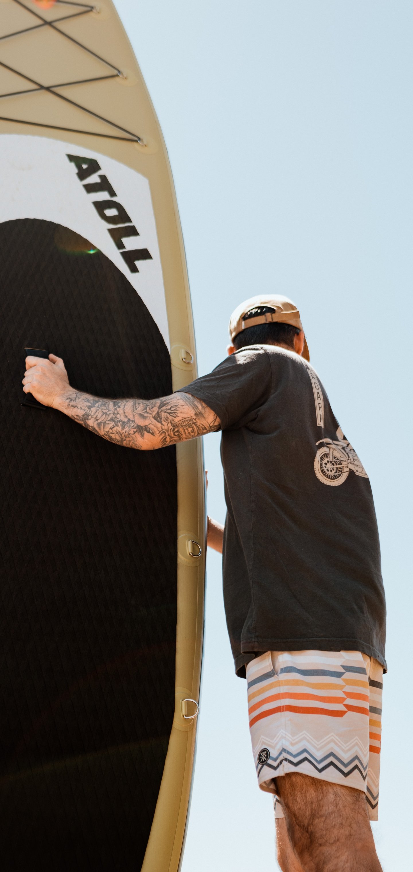 Обои: парень и серферная доска - 1440x3040