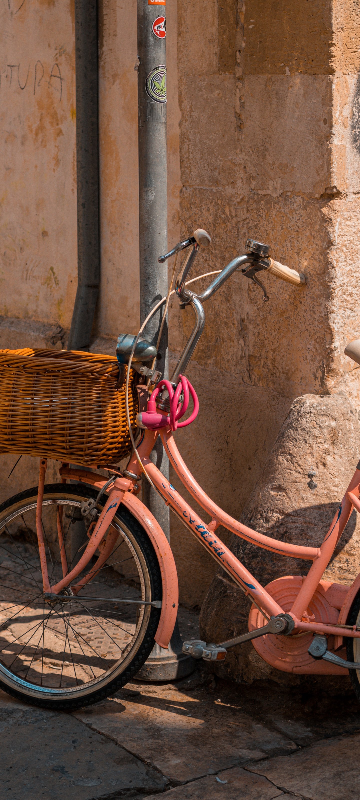 Обои: персиковый велосипед - 1440x3200