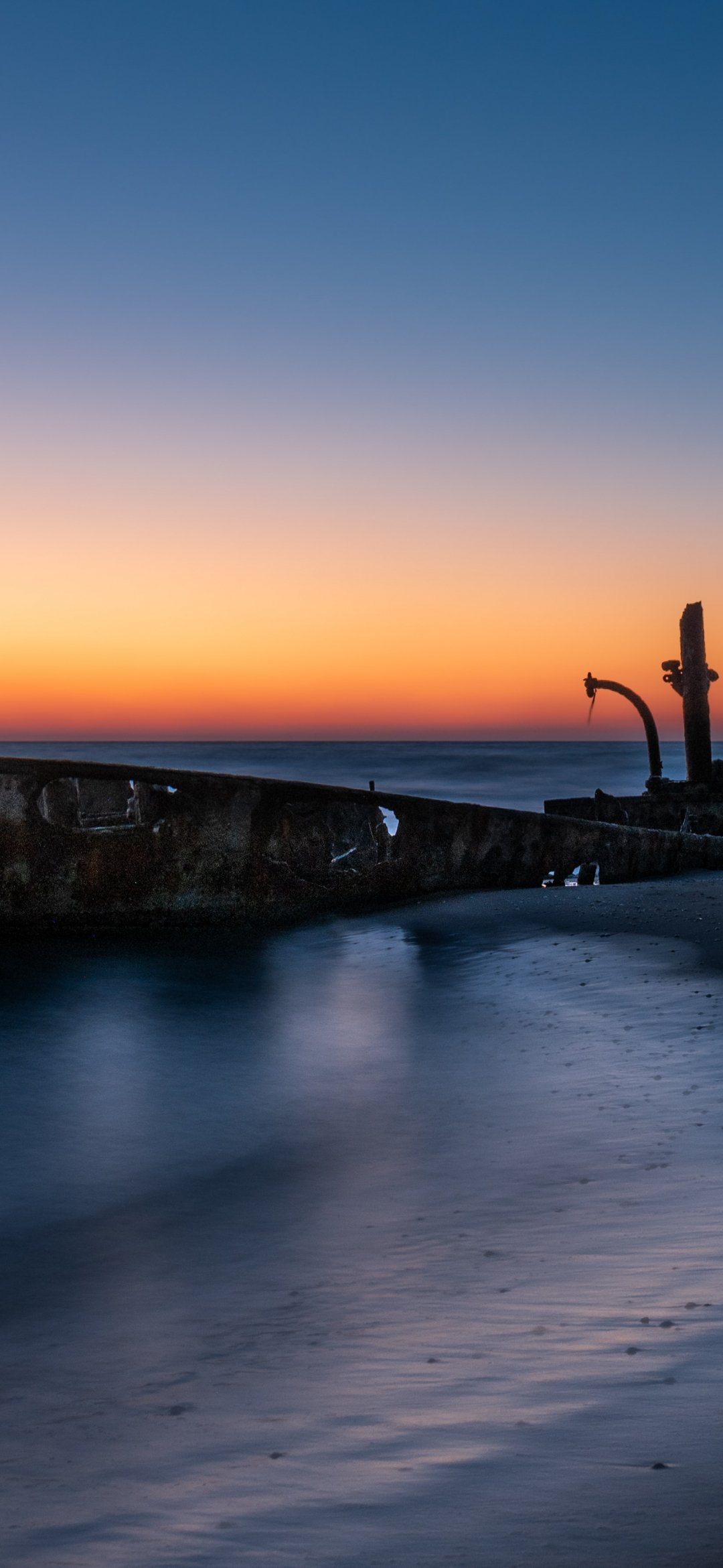 Обои: закат, заброшенный корабль - 1080x2340