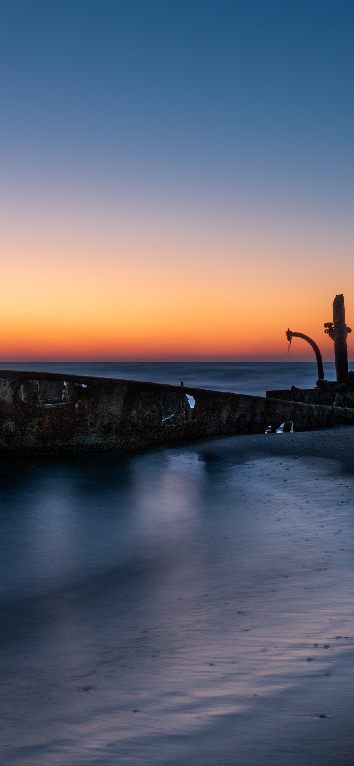 Обои: закат, заброшенный корабль - 1242x2688