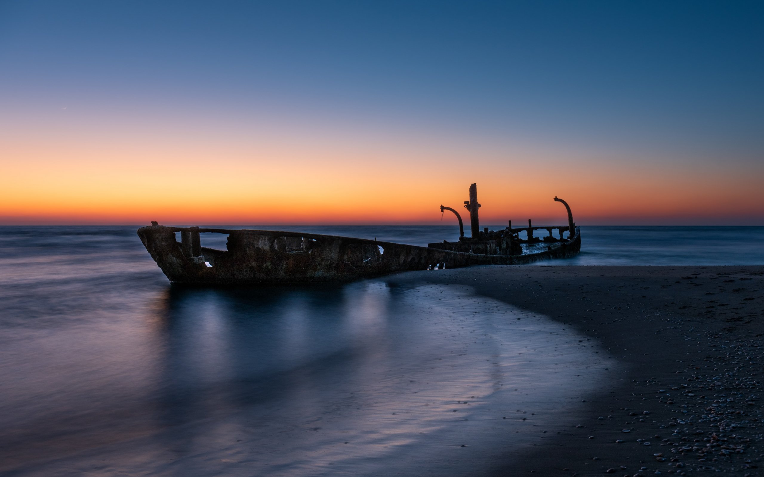 Обои: закат, заброшенный корабль - 2560x1600