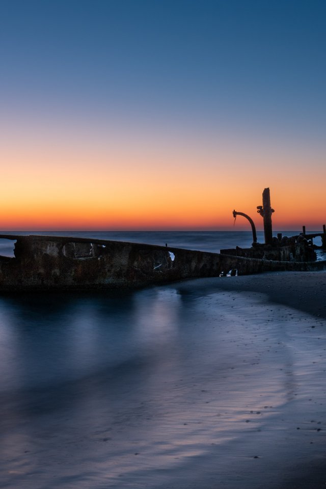Обои: закат, заброшенный корабль - 640x960