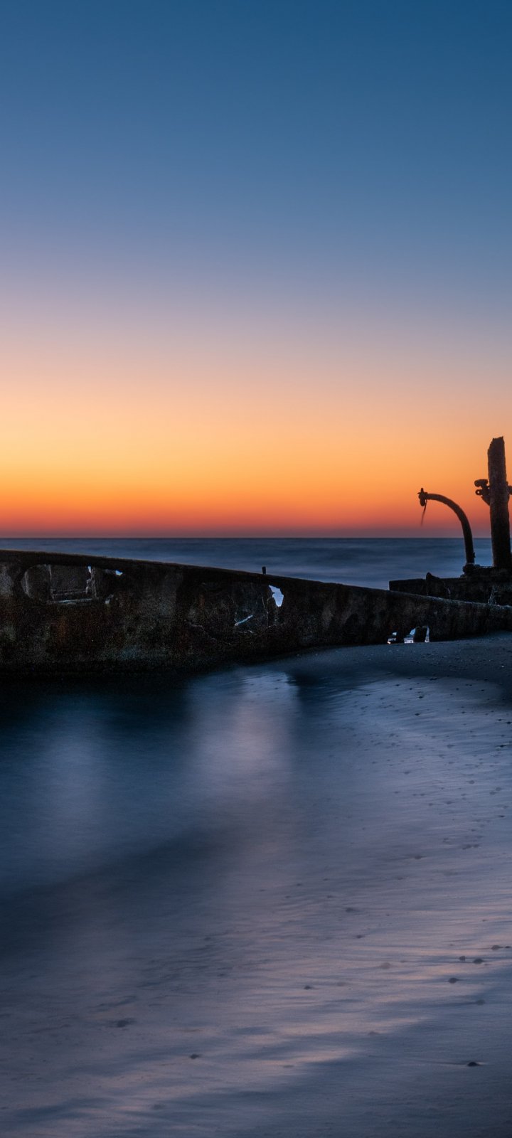 Обои: закат, заброшенный корабль - 720x1600