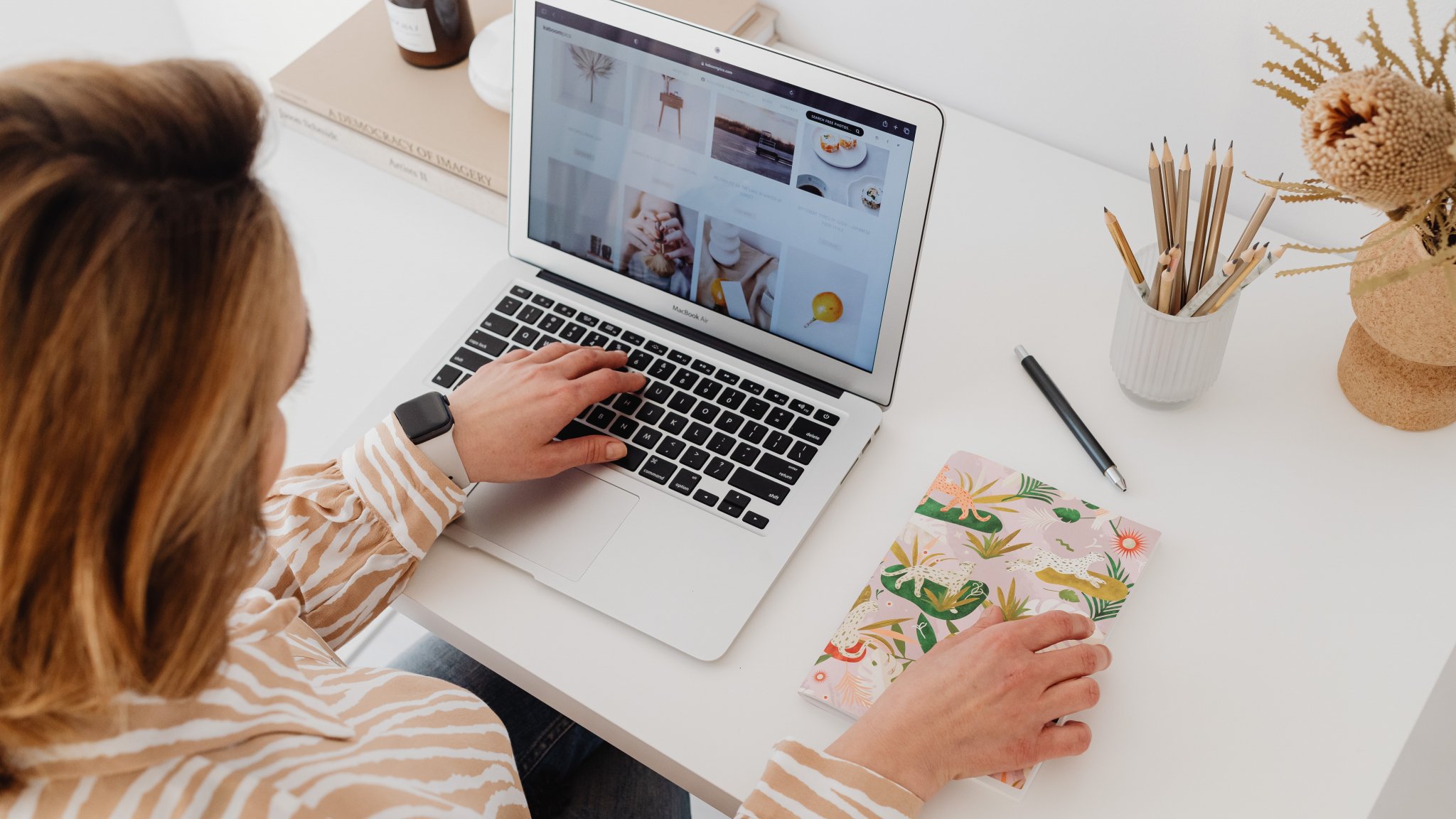 Обои: женщина за рабочим столом - 2048x1152