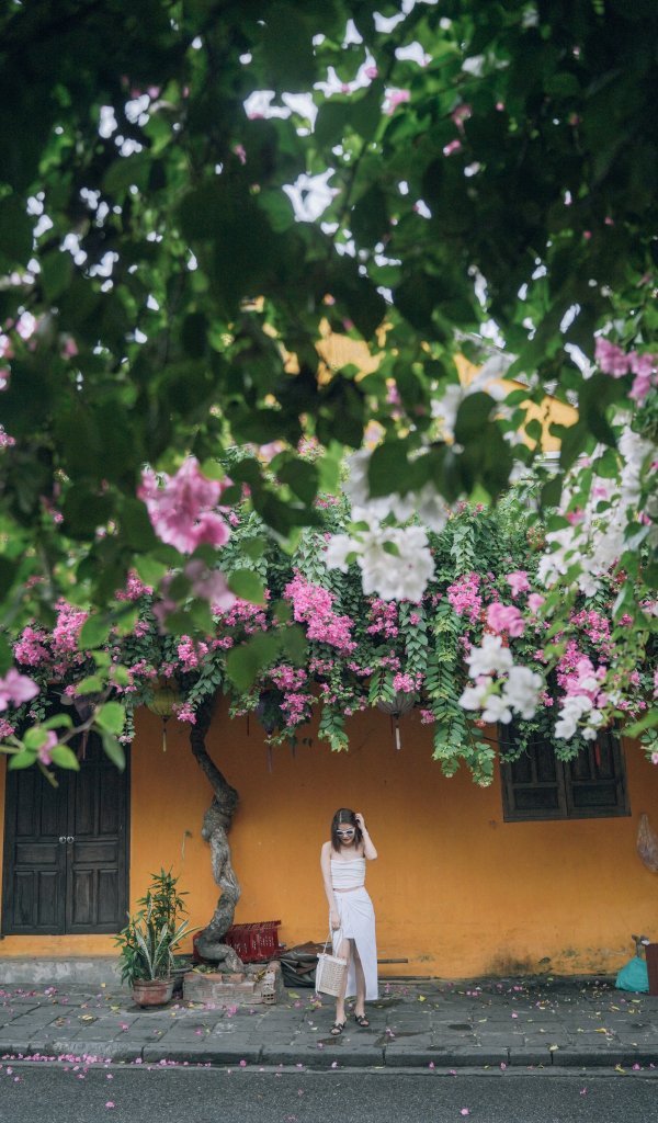 Обои: девушка под цветами - 600x1024
