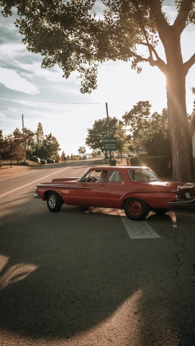 Обои: красная машина, город - 640x1136