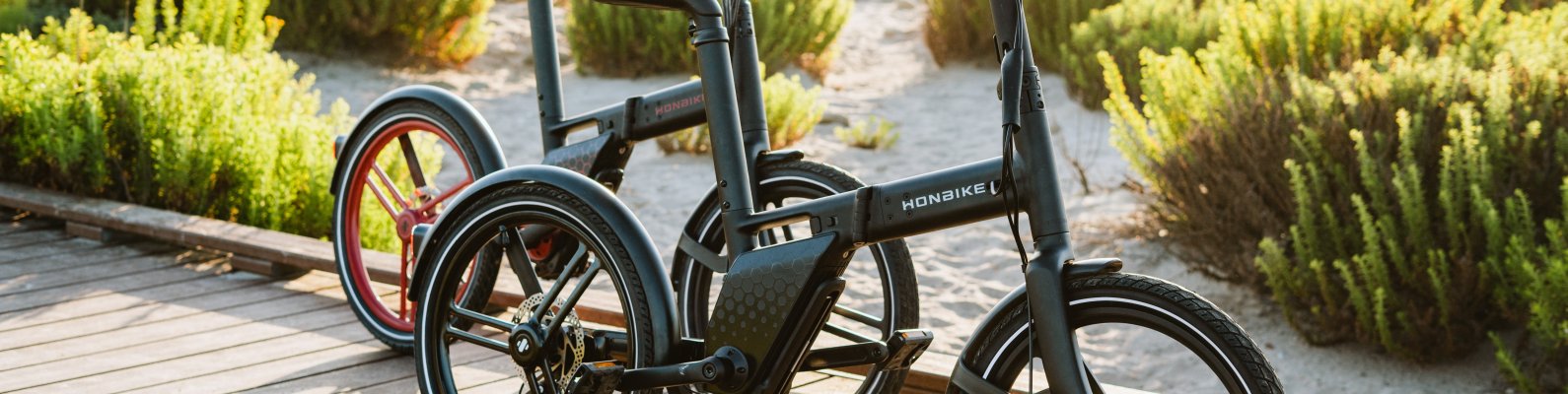 Обои: два велосипеда, дорожка на пляже - 1590x400