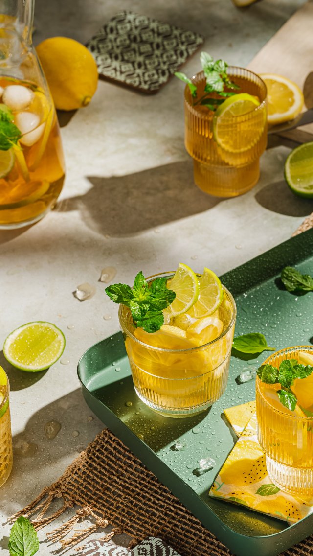 Обои: домашний чай со льдом и лимоном - 640x1136