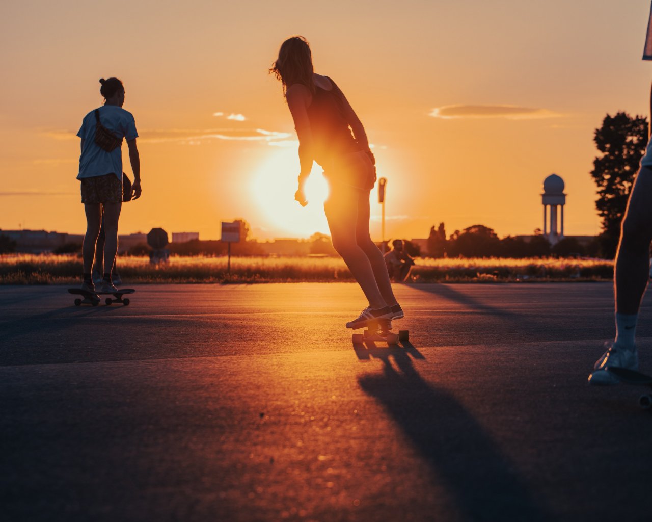 Обои: скейтбордисты, закат - 1280x1024