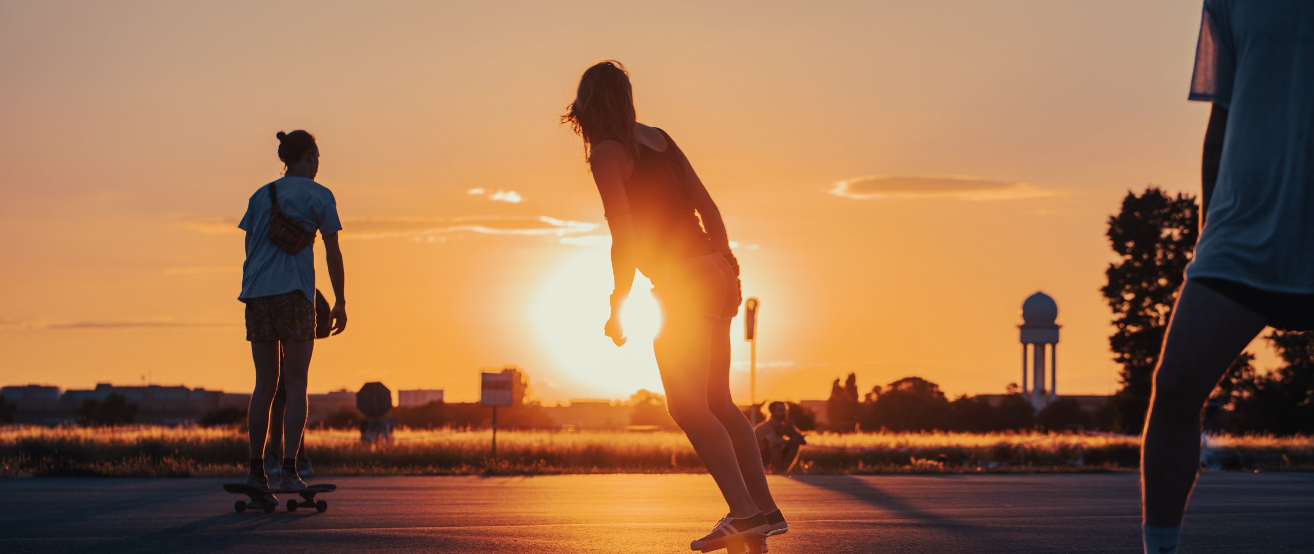 Обои: скейтбордисты, закат - 2560x1080